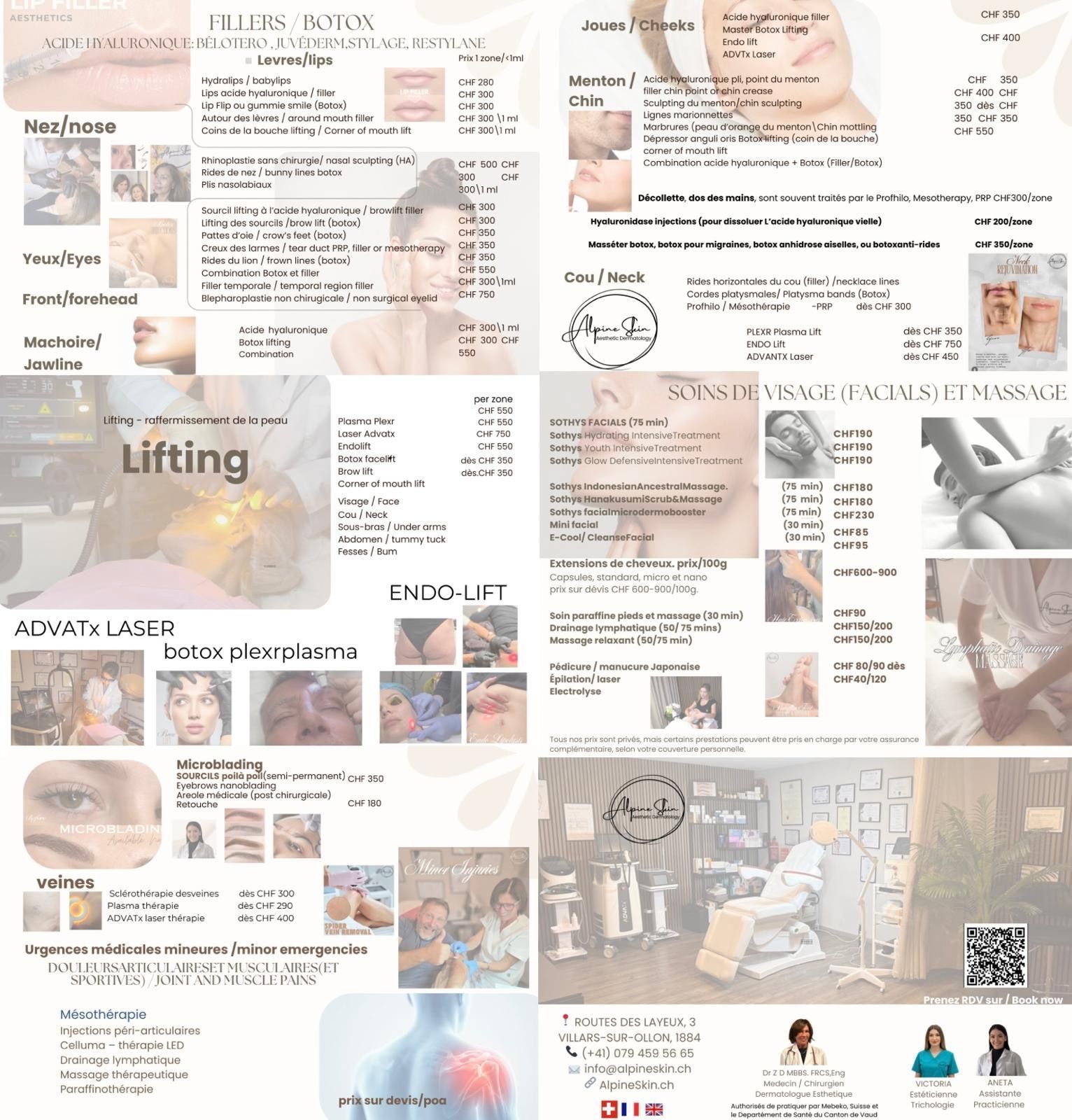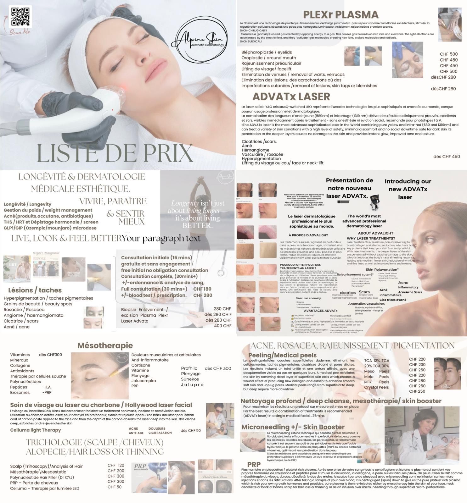Alpine Skin Clinic est un centre spécialisé dans longévité, le dermatologie et les soins esthétiques medicals avancés, la chirurgie esthétique et les prestations de beauté :
