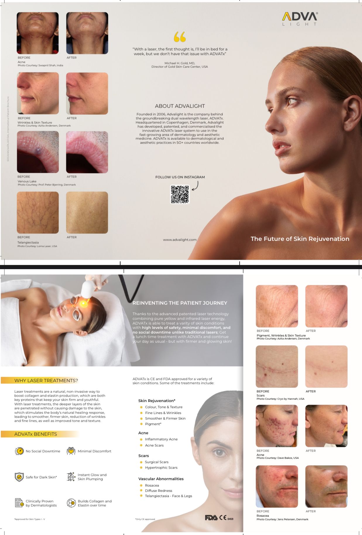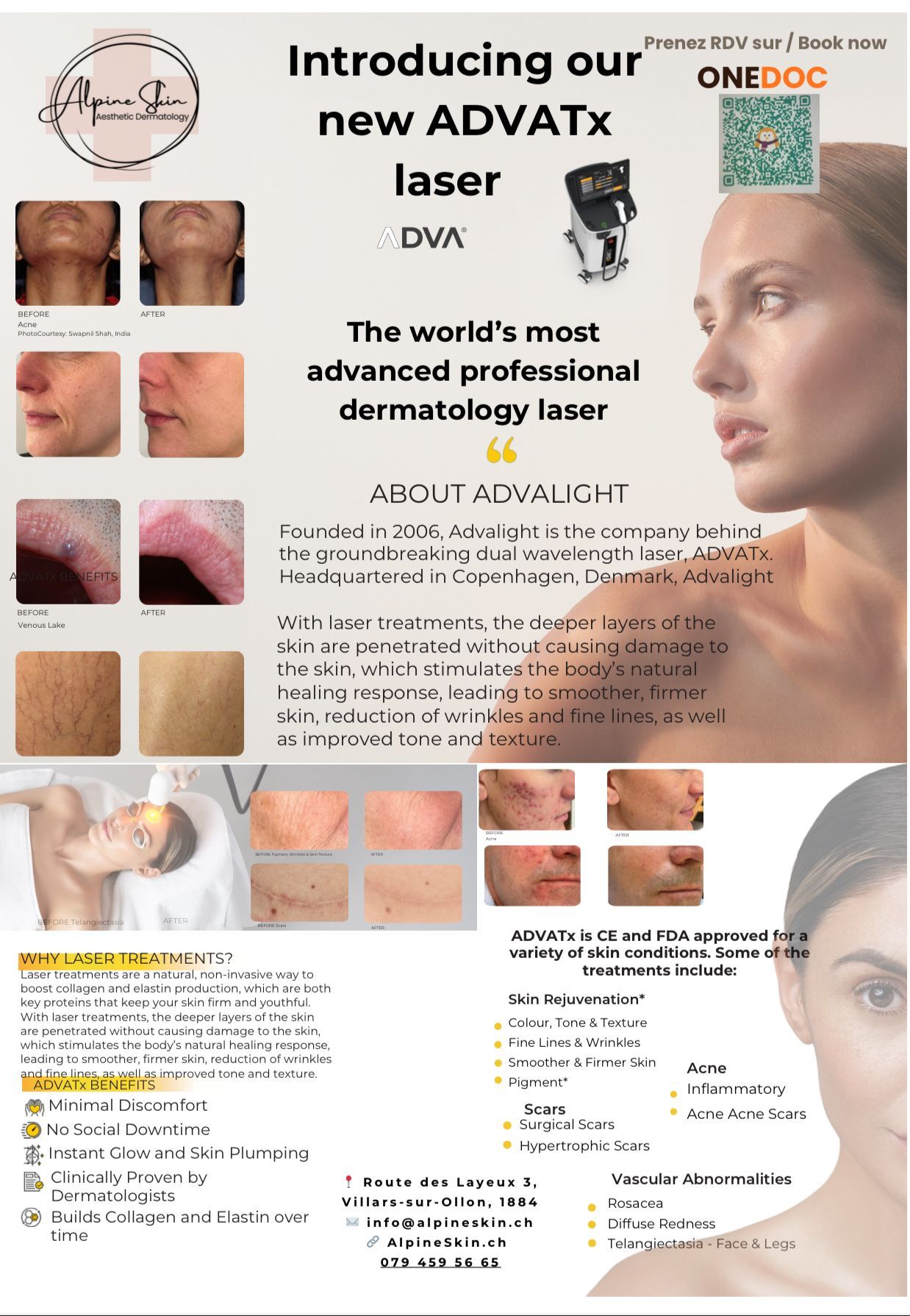 - LASER -ADVATx le laser plus avancé et dermatologique du monde, pour le rajeunissement, acné, rosacea, hyperpigmentation, cicatrices, et lésions vasculaires ou après soleil… resurfacing sans douleurs ou down-time, non-ablative, et Carbon laser soin de visage.